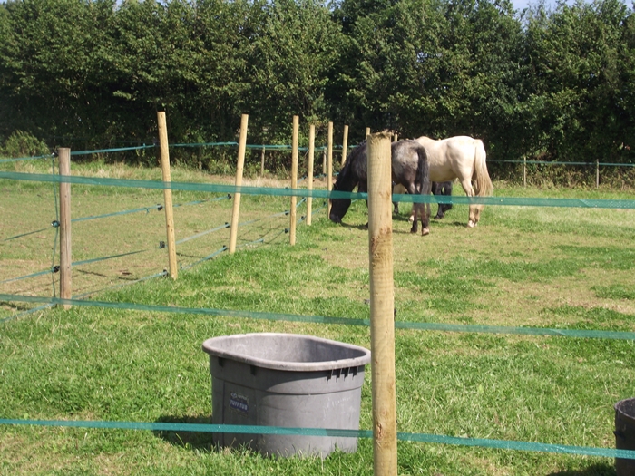 We tried to use as many old posts as possible and had to untangle miles of electric tape. We had to put 4 rows in because Shadow is an escape artist. Some of the posts are not straight but after the 20th I did not care. My husband and I spent another week creating paddock No 2. So we can move them from one to the other. I'm really pleased with all our hard work and our ponies seem to be a lot happier. Shadow is moving really well now.................